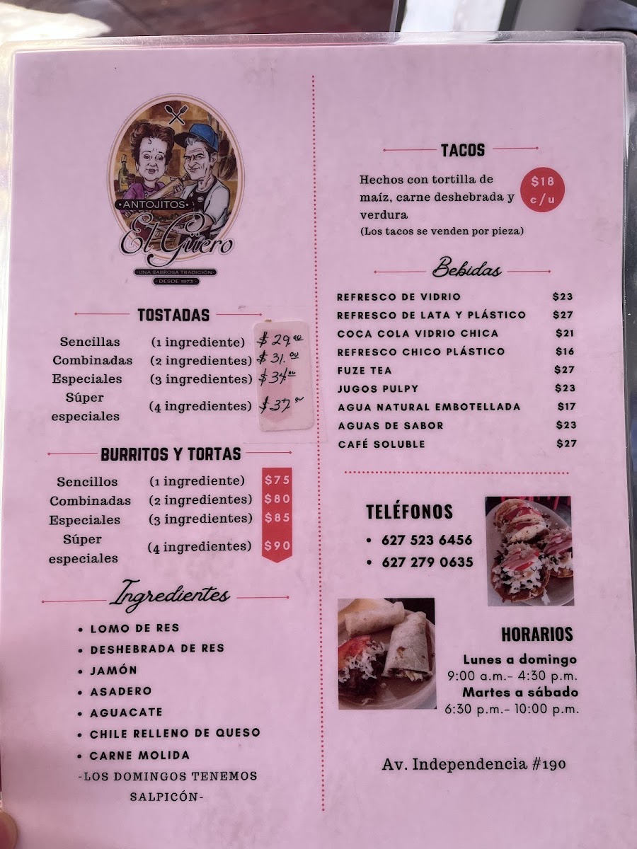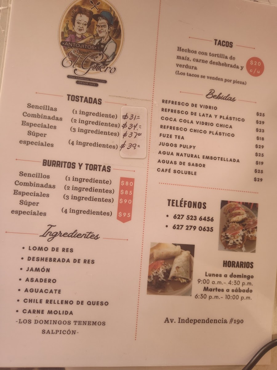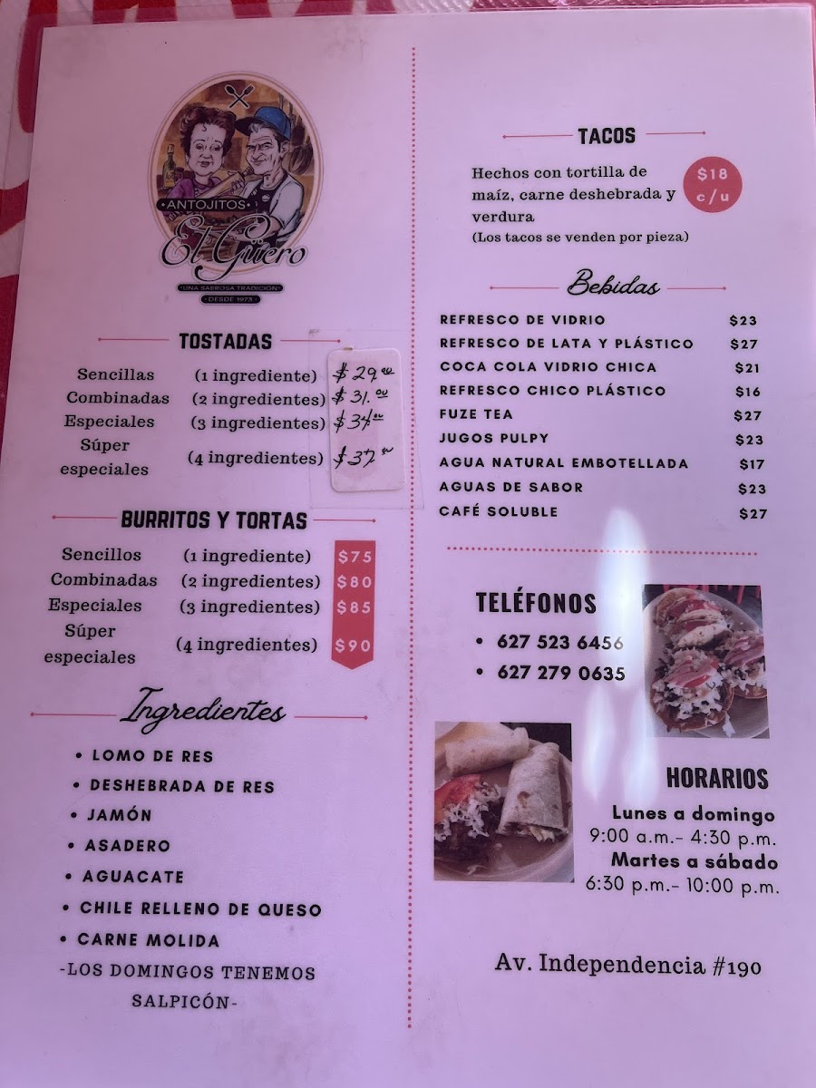 Welcome to Antojitos El Güero, a culinary gem nestled in the heart of Hidalgo del Parral, Mexico. This vibrant eatery is a must-visit for those craving authentic Mexican antojitos. The menu showcases a delightful array of options, particularly their mouthwatering tostadas, prepared with freshly fried tortillas that ensure optimal crispness. Customers rave about the flavorful deshebrada served in tacos and tostadas, often garnished with avocado and creamy asadero cheese. Regulars point out the charming ambiance, friendly service, and the reasonably priced offerings.